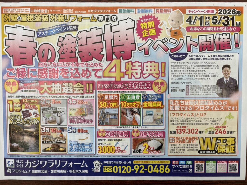 期間中、屋根、外壁塗装、外装リフォームのお見積りをご依頼いただいた方へ抽選で当たる!